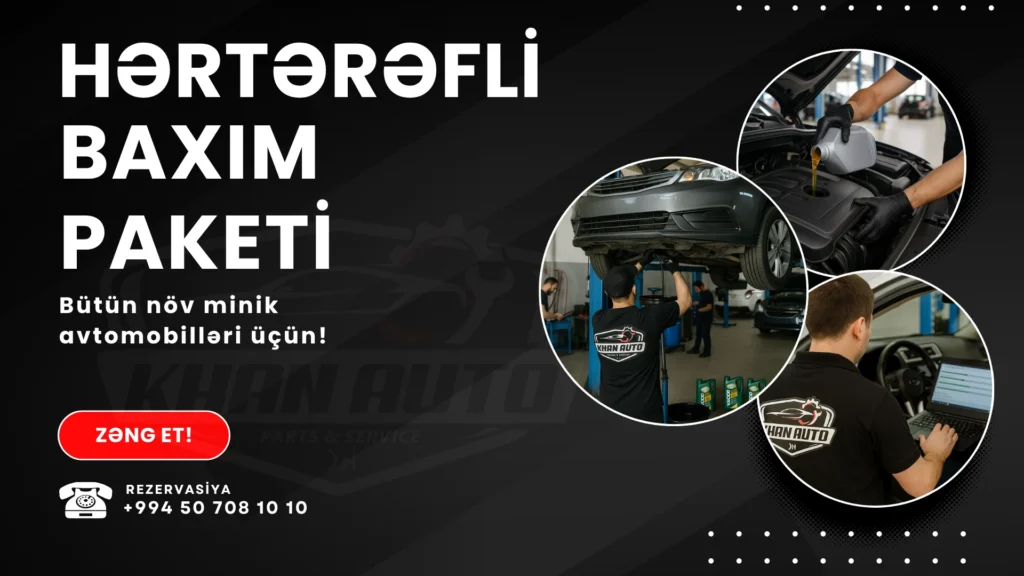 Avtomobilin uzunömürlü olması üçün sadəcə yağ dəyişmək kifayət etmir, hər detalına baxılmalıdır.Bu baxım paketi maşının ürəyi sayılan mühərrikdən tutmuş, asqısına, balansına qədər hər şeyi yoxlayır.Gizli xərclərin, yolüstü qalan problemlərin qarşısını vaxtında alır.Xüsusi seçilmiş keyfiyyətli materiallar və peşəkar yanaşma ilə təhlükəsizlik və rahatlıq təmin edilir.Maşının da, cibin də rahat nəfəs alsın deyə, bu paket tam sənlikdir!